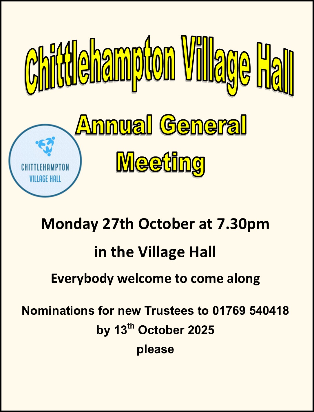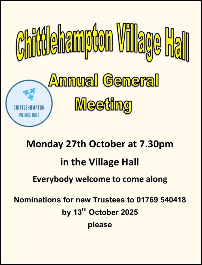 Mon 27 Oct 2519.30Village Hall AGMKeith Routledgekeith.routledge@btinternet.com+441769540418